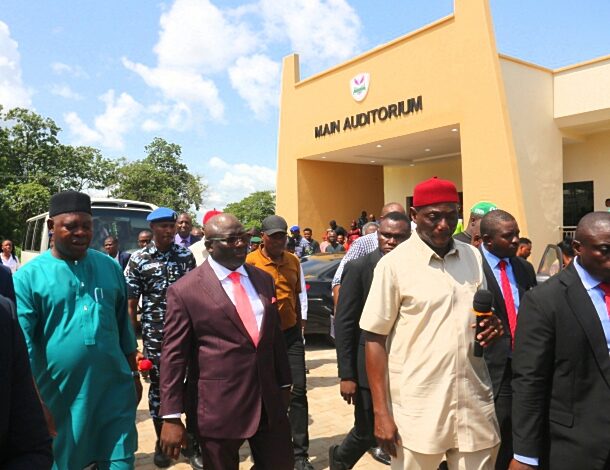 The projects inaugurated at the Dennis Osadebay University, Anwai-Asaba, include; 500 and double 250 seater auditoriums, faculty building and furnishing of Faculty of Agriculture, Administrative building; Vice-Chancellors lodge; gate entrance and main entrance access road at the University.