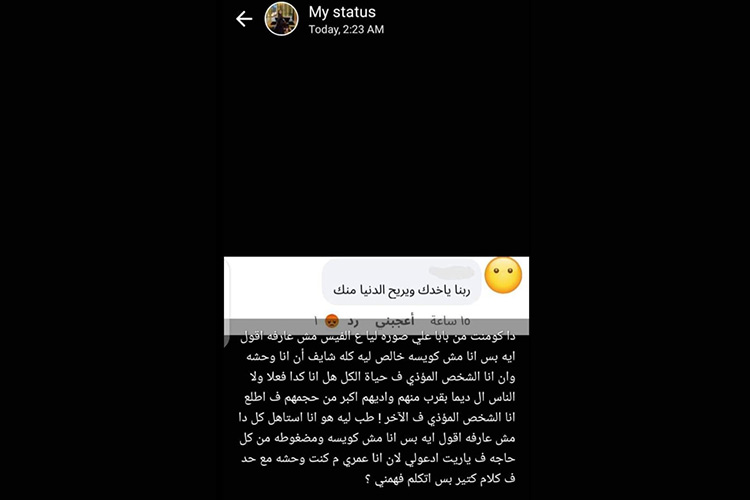 A few weeks ago, she wrote her will, asking everyone to remember her and forgive her. Her friends published pictures, showing her father’s disrespect for the matter, as he replied, “God Willing”, which caused great anger among the victim’s friends.