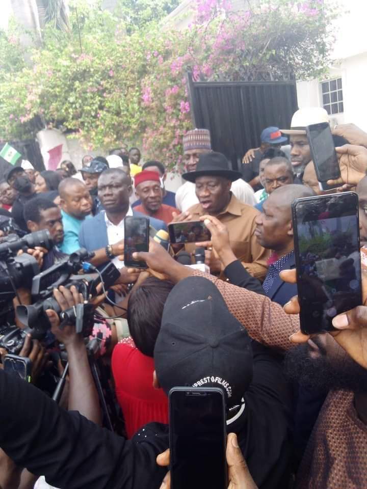 Hundreds of supporters, including women and youth groups, stormed Jonathan’s office, asking him to contest for President in 2023.