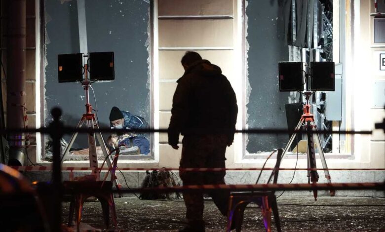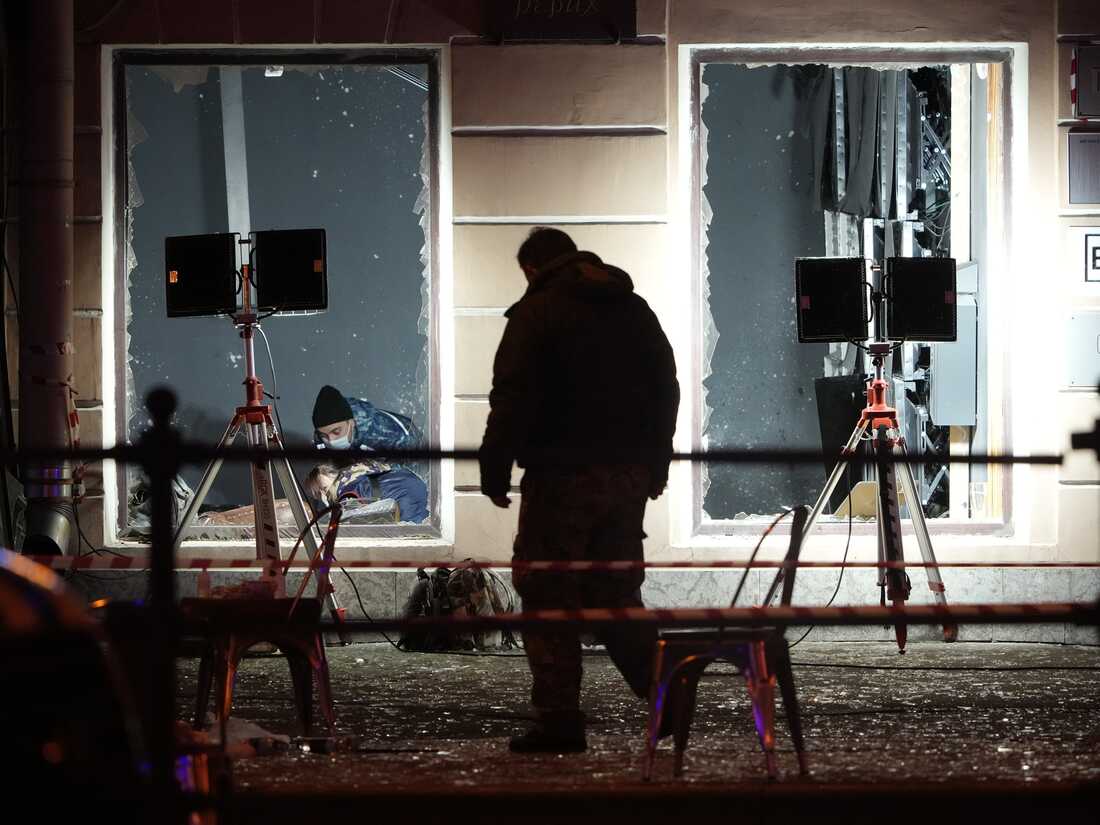 Russian investigators work at the site of an explosion at a cafe in St. Petersburg, Russia, on Sunday. An explosion tore through a cafe in the Russian city of St. Petersburg on Sunday.