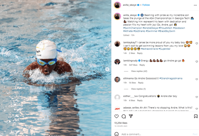 Anita Okoye, Paul Okoye’s ex-wife, is a happy mother as her son competes in the ASA Championships at Georgia Tech.