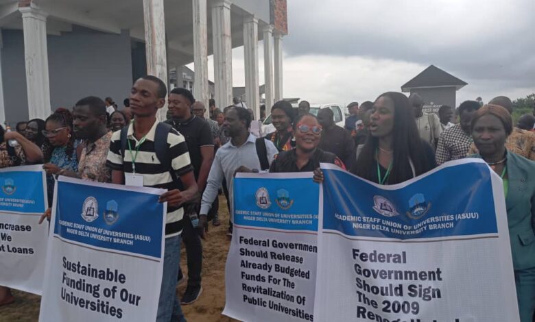 ASUU-NDU protest against FG loans, unpaid salaries,Non-Implementation of agreements