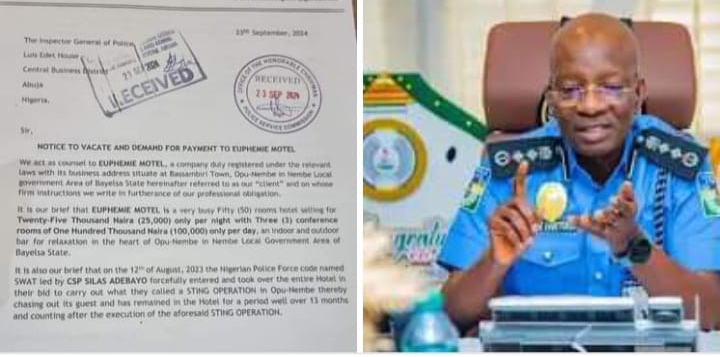 The Counsel to the owner of the Euphemie Motel, Inemoye Maxwell Brown Esq. in a letter dated 23rd of September,2024 and addressed to the Inspector-General of Police, Kayode Egbetokun and the Chairman, Police Service Commission, stated that the 50-bedroom hotel with lodging fee of N25,000 per night and two conference rooms of N100,000 per day with indoor and outdoor relaxation spots, was occupied by the Police Personnel without payment for over 13 months.