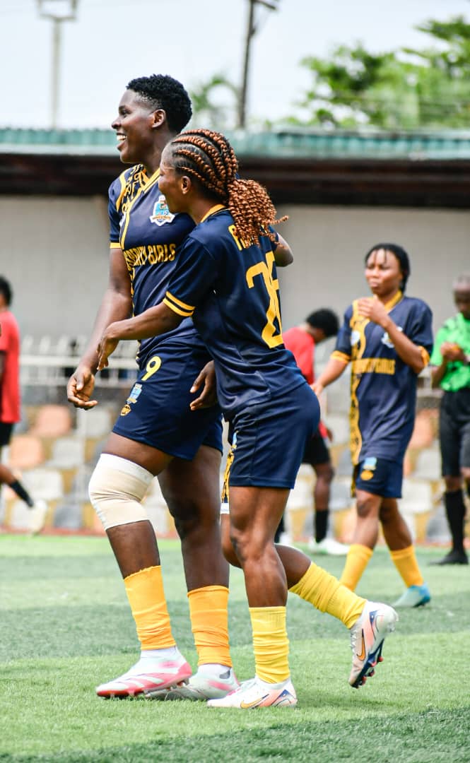 The Prosperity Girls humbled neighbours Rivers Angels by three goals to one to secure six points after two matches. Rofiat Bankole put the hosts ahead on 9 minute but the Pride of Rivers restored parity on 27 minutes through Zainab Oduga’s long range effort.