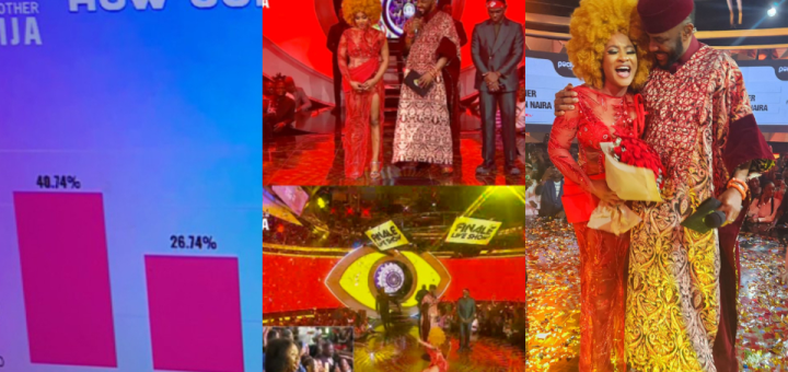 Bella amassed 15.78% of the votes while Adekunle followed closely with 12.36%. Chichi and Daniella were left with 2.49% and 1.89% respectively.