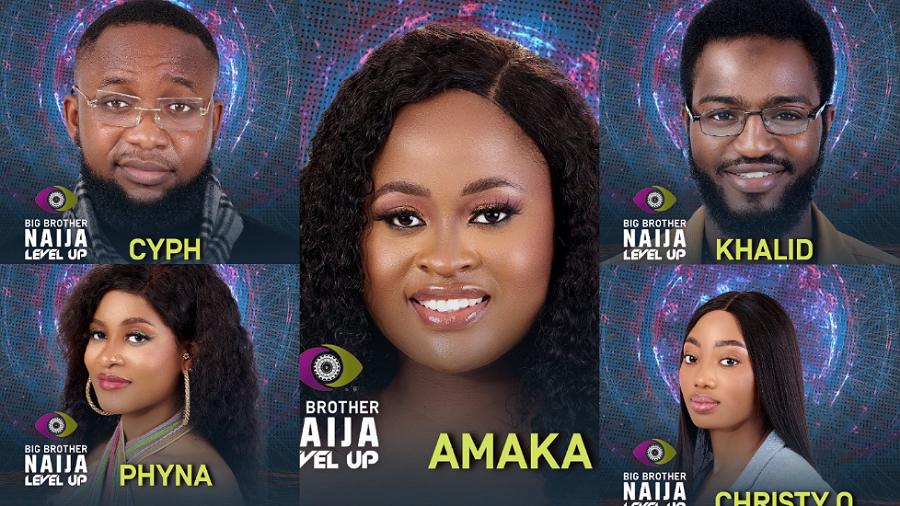 Cyph, Phyna, Christy O, Amaka, and Khalid are the housemates nominated for possible eviction in the ongoing Big Brother Naija (BBNaija) ‘Level Up’ edition.