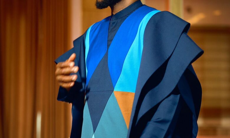 Debonair host — Ebuka Obi-Uchendu made another fashionable return to our screens last night for the Big Brother Naija All Stars Sunday Live Show wearing a custom multicoloured geometric patterned Agbada in various fascinating shades of blue matched to the perfect orange from the urban African luxury brand — Vanskere.