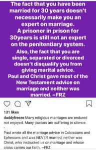 He stated that being single or divorced also doesn’t disqualify people from giving marital advice.