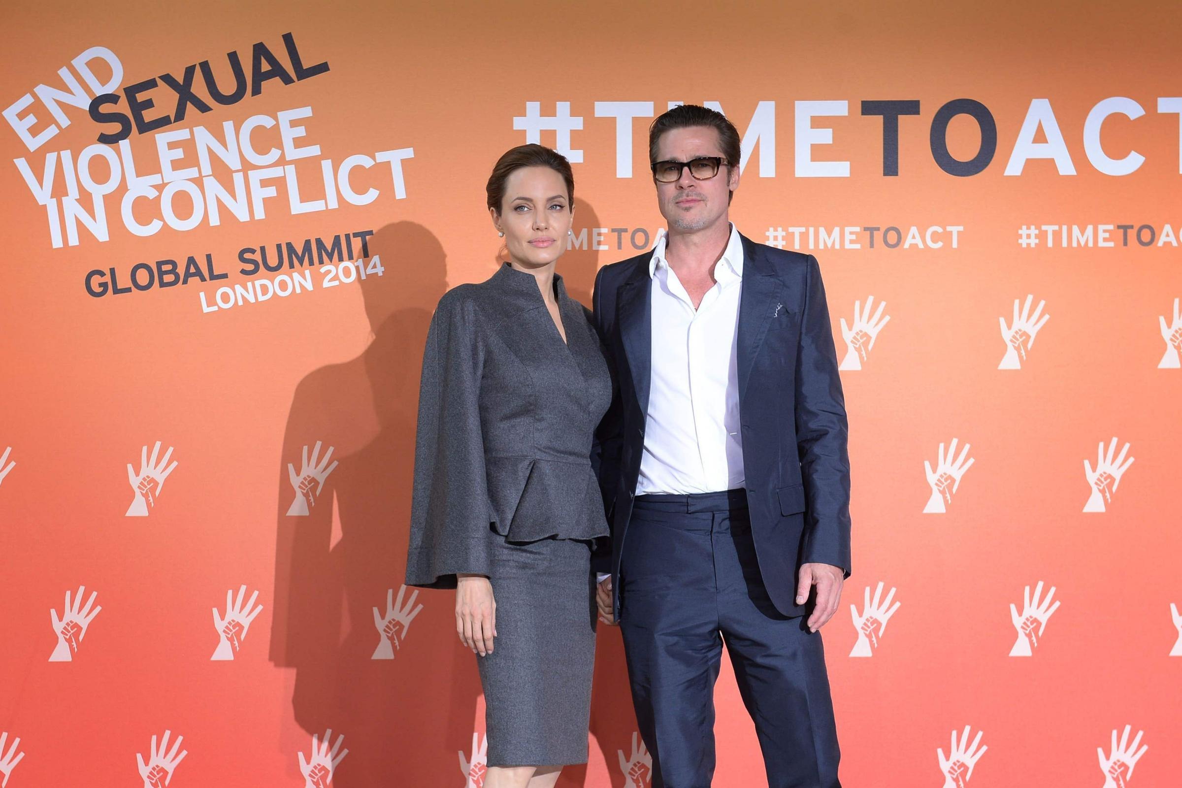 Brad Pitt and Angelina Jolie attend the premiere of Maleficent in London on Aug. 5, 2014.Justin Tallis / PA Images via Getty Images file