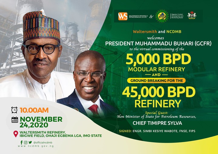Buhari gave the order during the virtual commissioning of Watersmith’s 5,000 barrels per day (bpd) Modular Refinery and ground breaking for the 45, 000 bpd refinery at Ibigwe Field, Ohaji Egbema Council Area of Imo State.