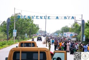 Throughout the Ouagadougou-Bobo route, the presidential motorcade was slowed several times by sporadic, enthusiastic gatherings along the route through towns such as Boni, Houndé, Koumbia, and others.