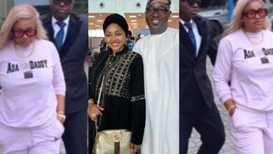“Baba is gone, What Did U Put in Ur Stew”- Video of Mercy Aigbe’s hubby working as her bodyguard goes viral