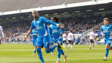 GOAL 1 – 0 Malik Mothersille of Peterborough United scores a goal and celebrates wearing mask during the EFL Sky…