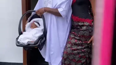 Renowned Afrobeats singer, Skales and his wife, Precious, step out in style as they dedicate their daughter, Anaya to God in church.…