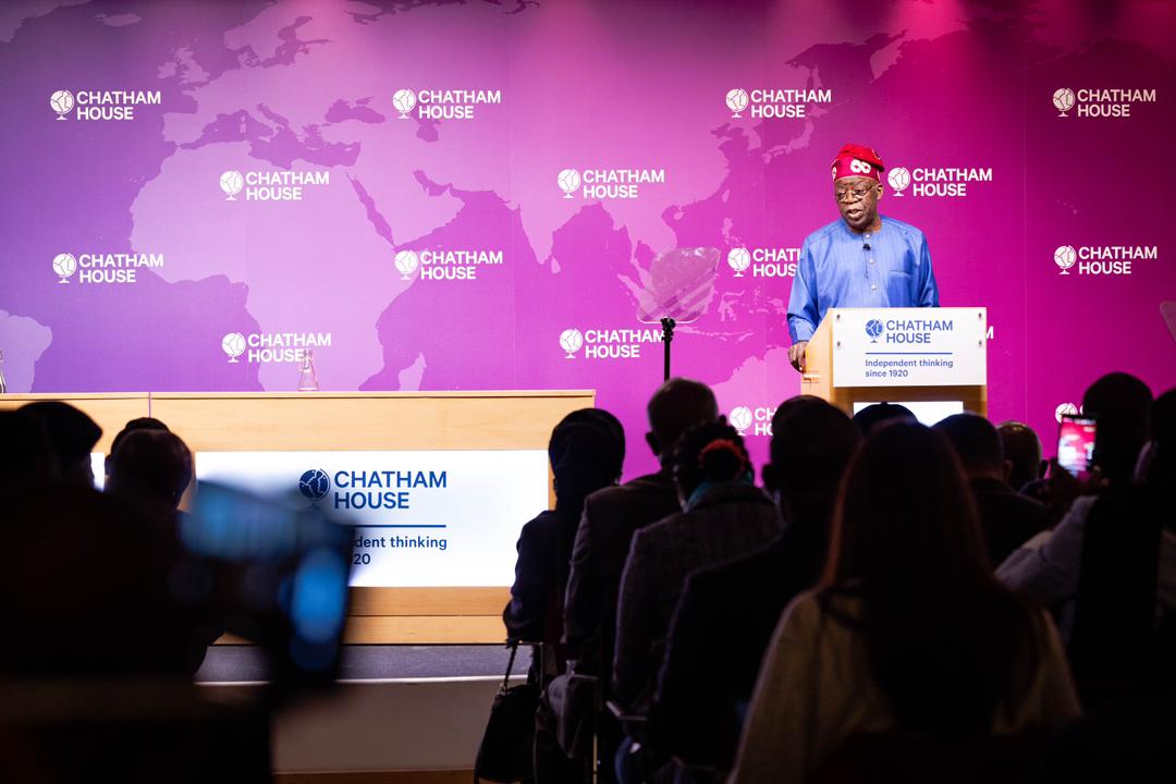 APC presidential candidate Bola Tinubu speaks at Chatham House on November 5, 2022.