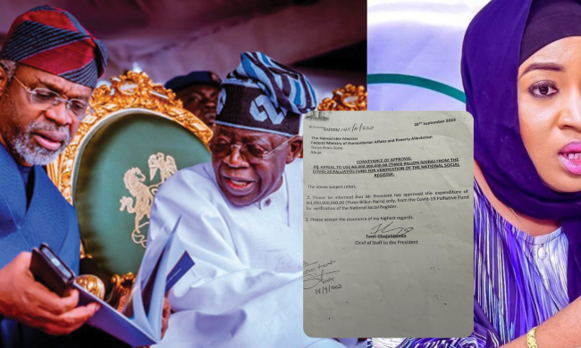 The letter from the office of Gbajabiamila, a former Speaker of the House of Representatives, is dated September 18 and is titled “CONVEYANCE OF APPROVAL; RE: APPEAL TO USE N3,000,000,000.00 (THREE BILLION NAIRA) FROM THE COVID-19 PALLIATIVE FUND FOR VERIFICATION OF THE NATIONAL SOCIAL REGISTER.”