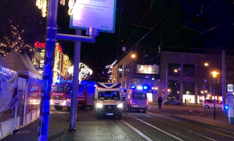 Emergency services respond to the attack in Magdeburg on Friday night.
