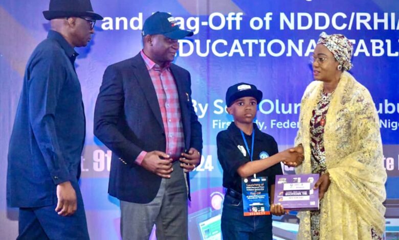 Nigeria’s First Lady, Senator Oluremi Tinubu, has launched the Niger Delta Development Commission, NDDC, and the Renewed Hope Initiative, RHI, partnership in the distribution of 45,000 U-Lesson Educational Tablets in primary and secondary schools across the Niger Delta region.