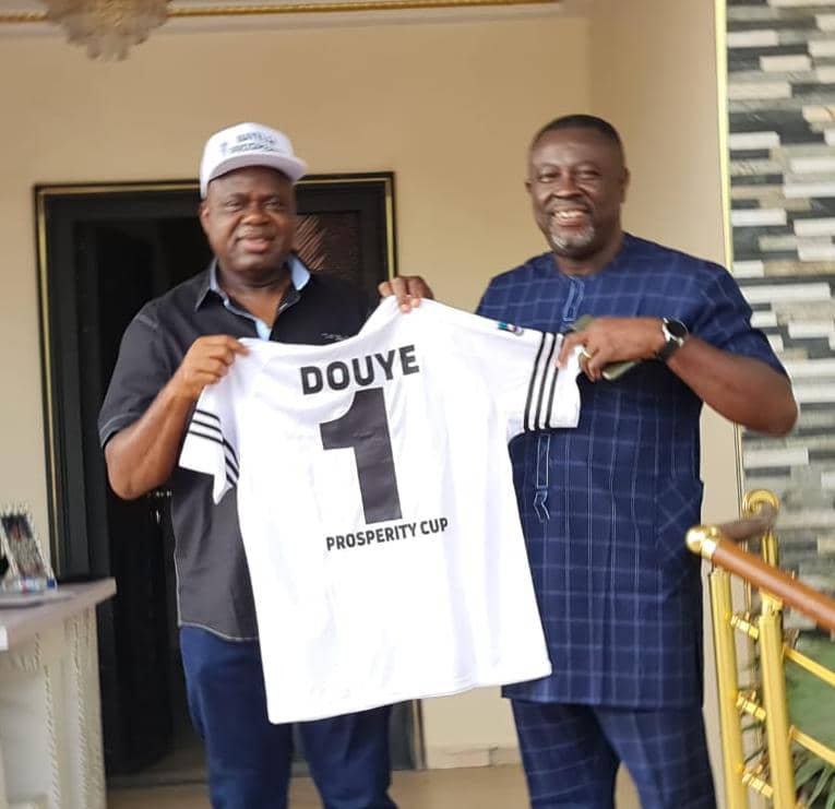 The Director-General of the Bayelsa State Governor’s Football Tournament aka Prosperity Cup, Ono Akpe has formally presented Governor Diri with his official jersey of the Prosperity Cup. The presentation was made at the governor’s home town Sampou in Kolokuma/Opokuma Local Government Area of Bayelsa State on Thursday, two days after the burial of Pa Abraham Joseph Michael Diri, the father of Governor Douye Diri.