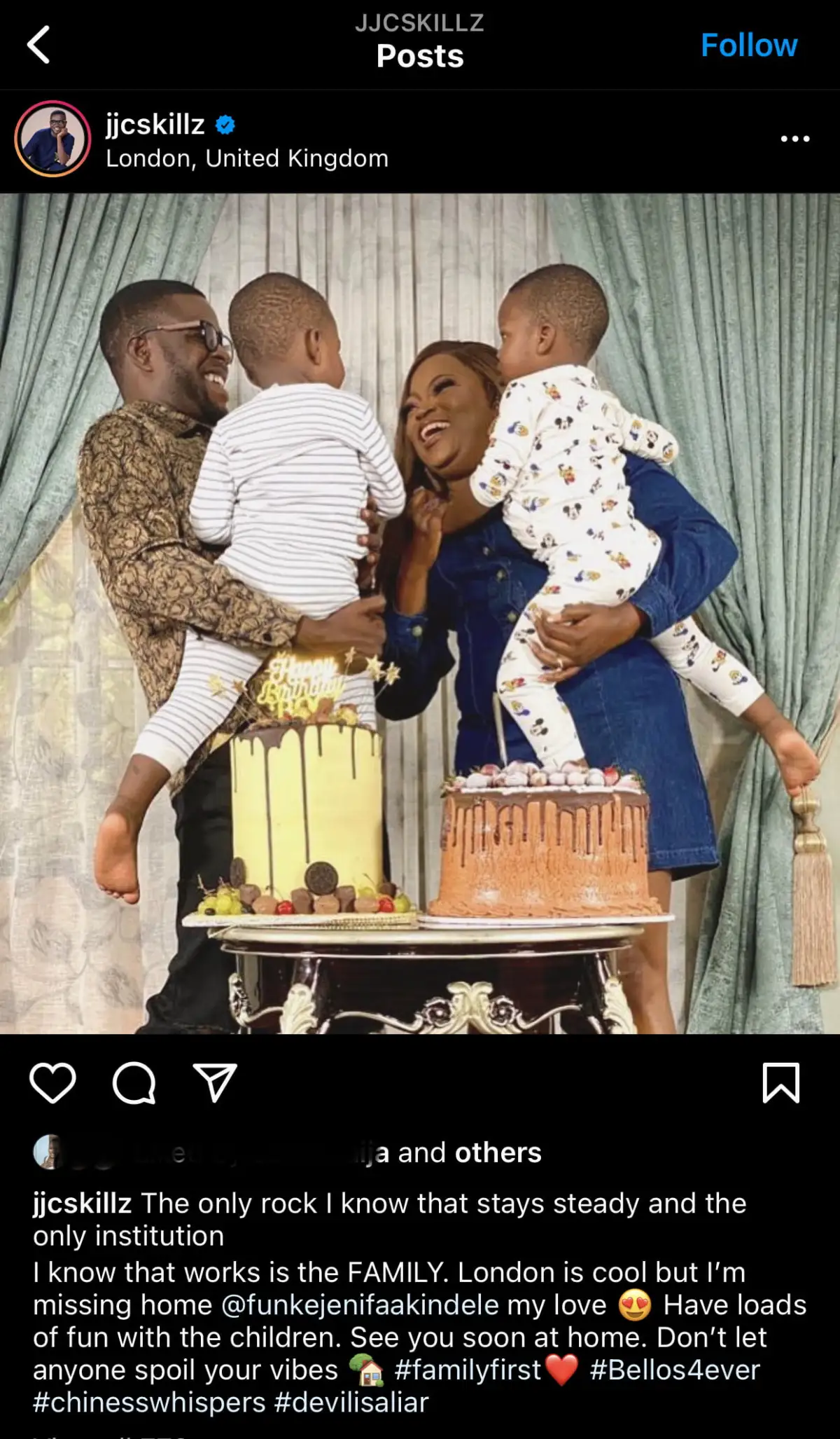 ‘Happy Birthday My Darling’ – JJC Skillz Celebrates Funke Akindele Amid Marital CrisisThe entertainer captioned the post with: “Happy birthday my darling Mama Ibeji, Funke Akindele, I pray our children to embody the goodness of God and be a blessing to generations. Today is your day! celebrate and live to the fullest. Long life and prosperity.”