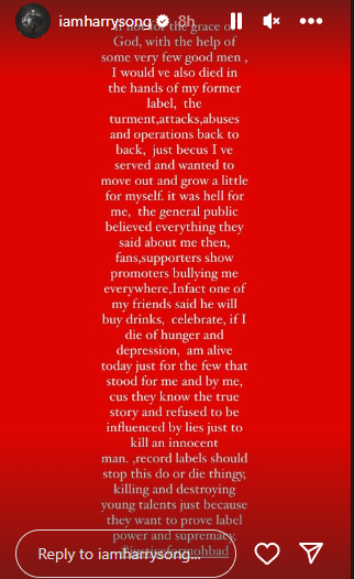 “Because they know the true story and refuse to be influenced by lies just to kill an innocent man, record labels should stop these do-or-die things, killing and destroying young talents just because they want to prove label power and supremacy.”