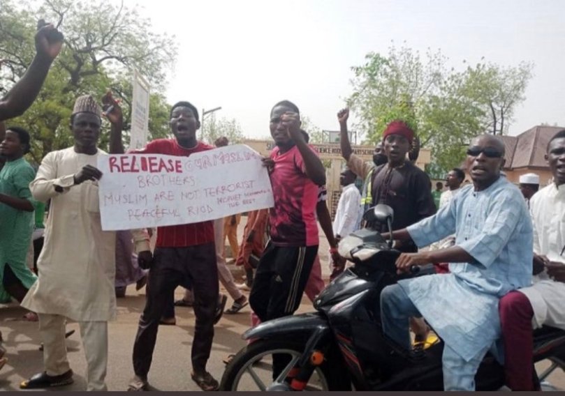 There is an ongoing protest in Sokoto State seeking for the immediate release of persons arrested by police over the gruesome murder of Miss Deborah Samuel who was accused blasphemy, POLITICS NIGERIA reports.