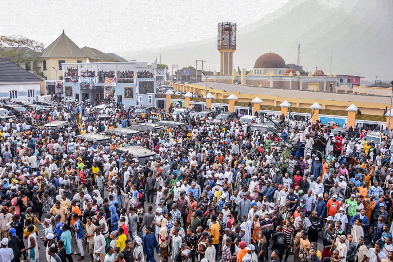 Heroic homecoming: Mammoth crowd storm Okene streets to welcome Yahaya Bello