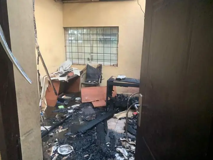 It was also reported that some hoodlums numbering about eight were said to have scaled the perimeter fence, jumped into the premises and set the INEC building on fire from the rear side.