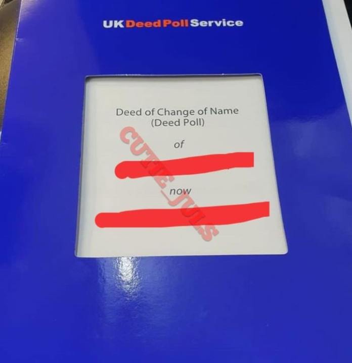 Blogger, Cutie Julls further shared alleged documents of his name change.