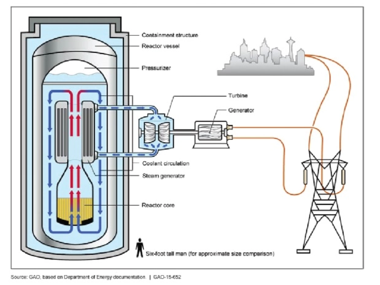 There are many benefits of SMRs, which are linked to the nature of their design – being small (from 50 MW to 300MW or about one-third the size of a typical nuclear power plant) and modular, meaning new modules of the reactor can be built independently as modules in a larger complex, with increased power capacity added when required.