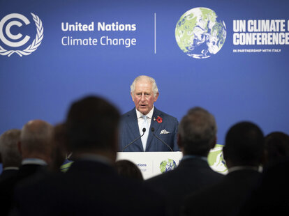 FILE – Britain’s then-Prince Charles addresses a Commonwealth Leaders’ Reception, at the COP26 Summit, at the SECC in Glasgow, Scotland, Nov. 2, 2021. Credit: Stefan Rousseau / Pool Photo via AP