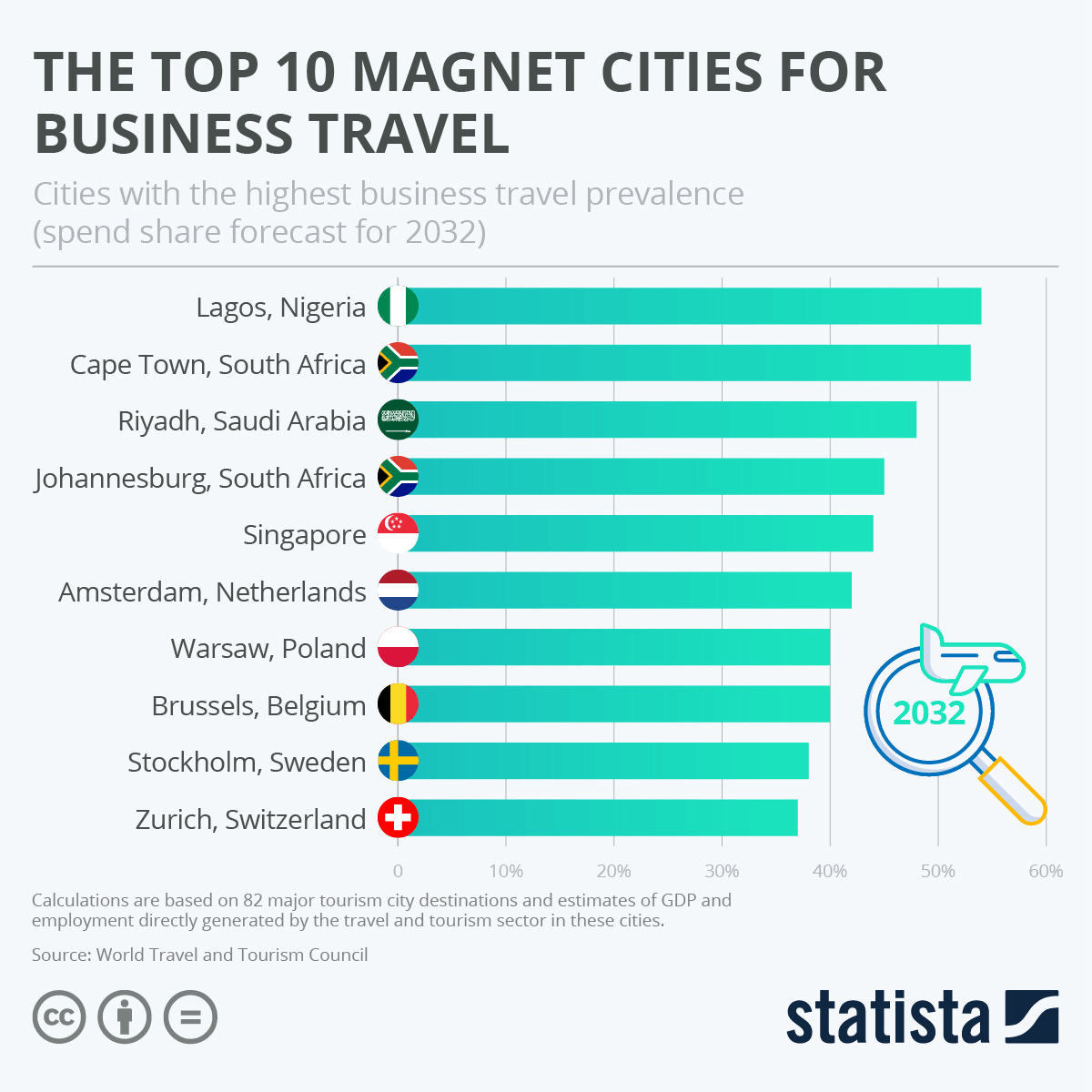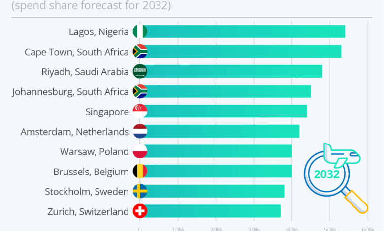 The study said, “By 2032, Lagos, Nigeria, is predicted to have the largest share of business travel spending in the world. Lagos’ share of business spending is anticipated to make up more than half of the city’s tourism spend and is joined by fellow cities like Cape Town and Johannesburg in South Africa, and Riyadh in Saudi Arabia in the top four”.