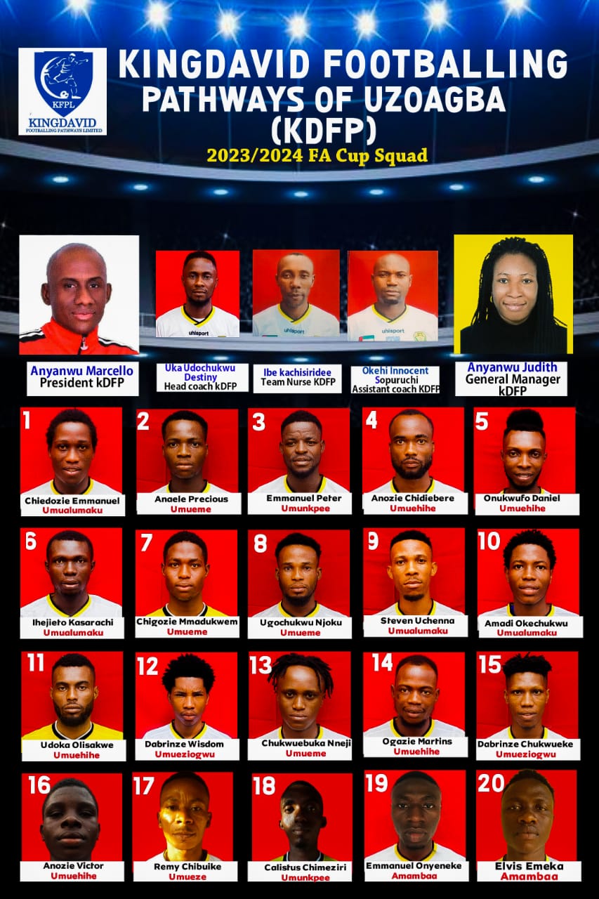 The head scout and assistant coach of Gulf united Fc Dubai, Marcello Anyanwu has named 20 man squad from his community to participate in 2023/2024 State FA cup.