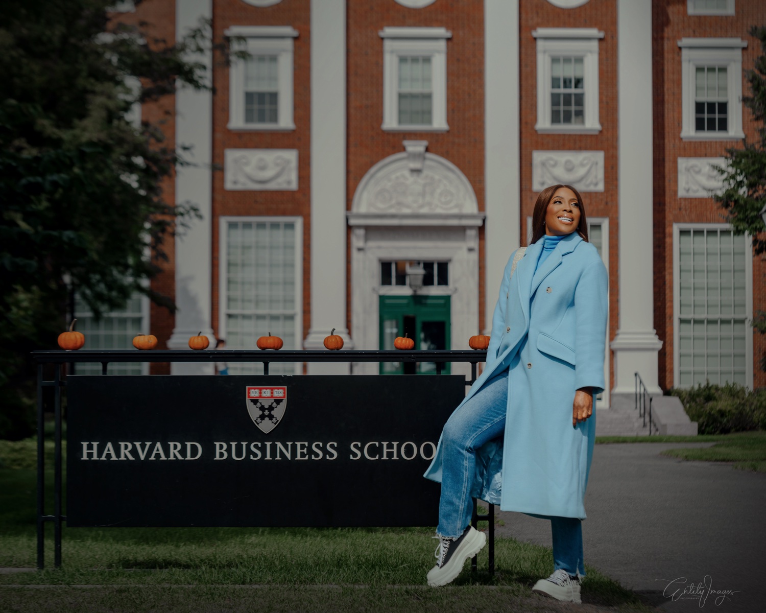 Excited about her appointment, the EbonyLife Group CEO shared photos which captured her in the premises of the graduate business school of Harvard University.
