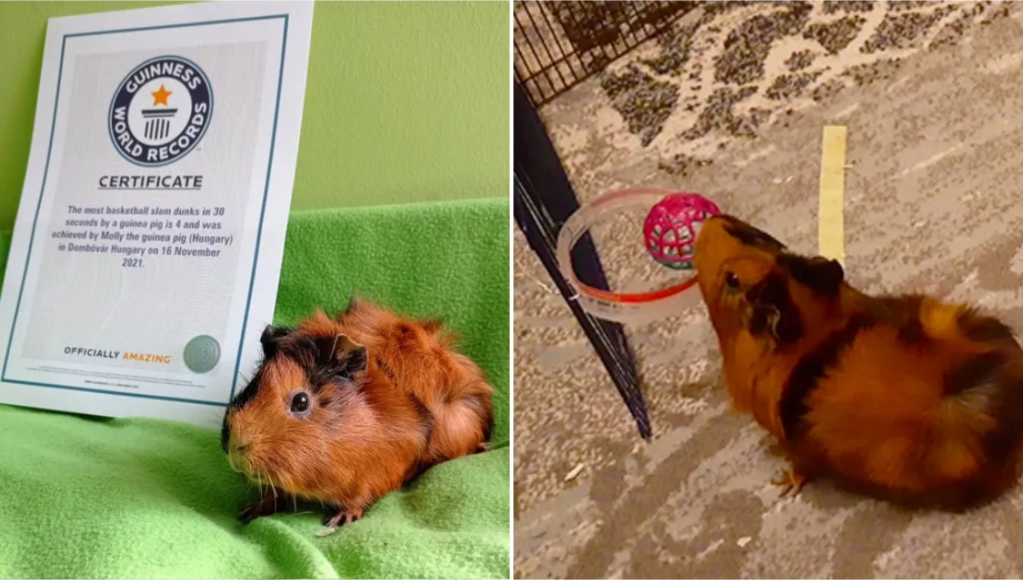 A guinea pig from Hungary has broken the Guinness world record for the most basketball slam dunks in 30 seconds by a guinea pig.