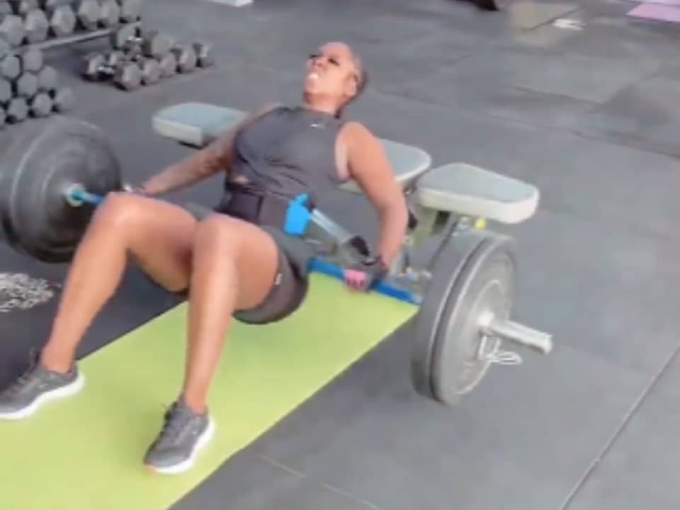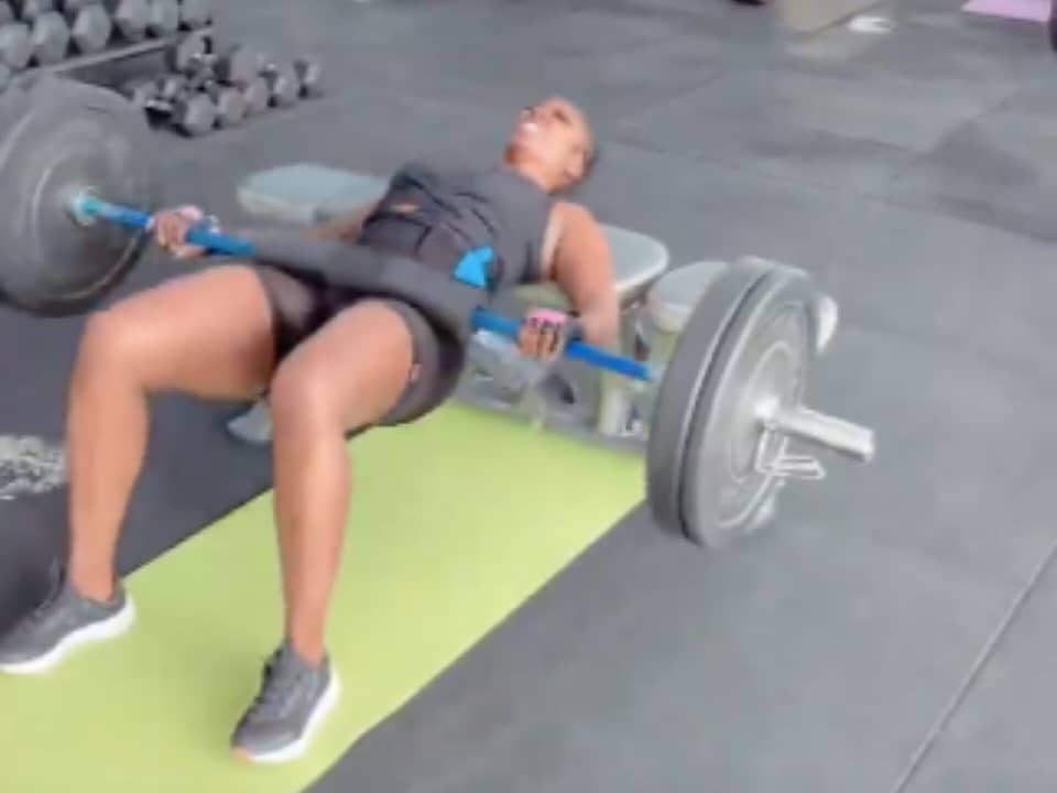 The singer, who clocked 42 years on 5 February, 2022 was caught in a video on her Instastory engaging in serious fitness exercise and lifting challenge.