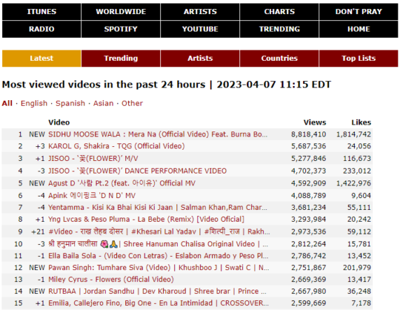 6hours after release “Mera Na” by @iSidhuMooseWala x @burnaboy & @steelbanglez is now officially the nō #1 most viewed video on YouTube Globally in the past 24 hours.
