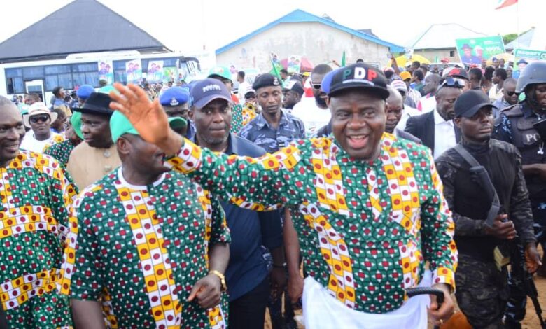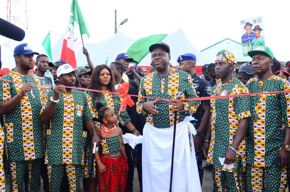 The governor’s campaign trail moved to the Amassoma civic centre where it was received by a mammoth crowd of Peoples Democratic Party (PDP) members and supporters.