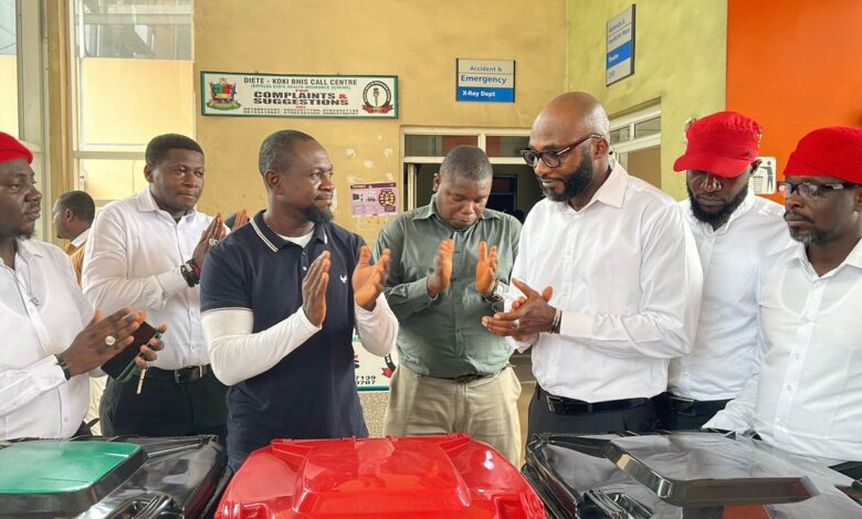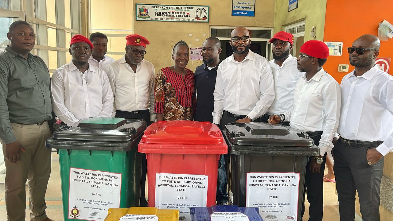 The National Association of Seadogs, Pyrates Confraternity (NAS PC), Ox-Bow Marino Deck, led by the Deck Capoon Engr. Timothy Egbonoje has visited the Diete-Koki Memorial Hospital, Opolo, Yenagoa, Bayelsa State with a donation of some Waste bins to help in efficient waste collection and disposal, towards ultimately encouraging safe environment.