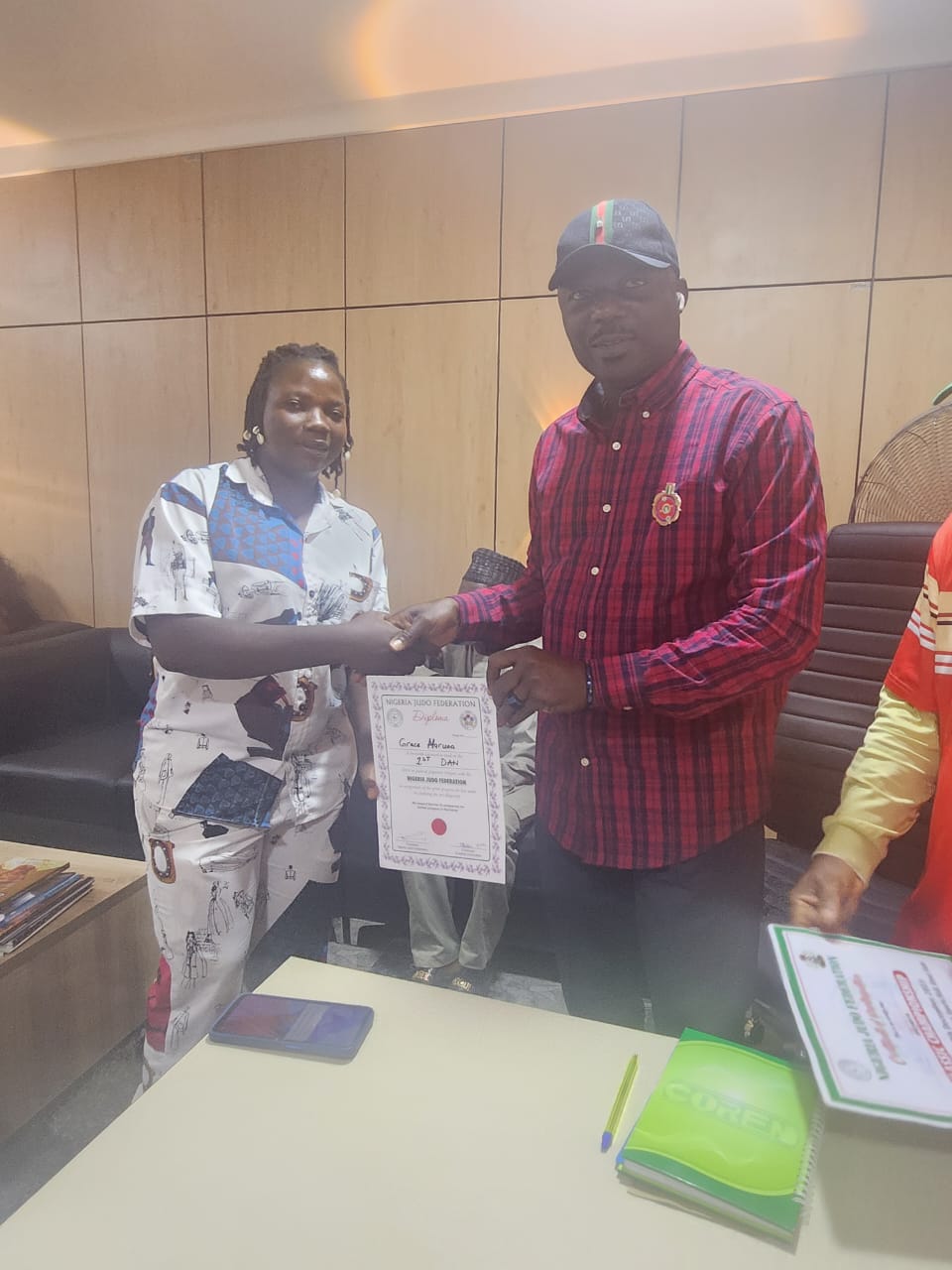 At a brief ceremony held in the office of the Permanent Secretary, Chief Barr. Isaac Danladi, and attended by members of the Organisation’s Management, on Friday, Coach Bashir Bassey disclosed that the female judoka took her quintessential credentials to the city of Port-Harcourt, Rivers State, fighting her way to the finals in the Women’s 78kg before gallantly bowing to her Ondo State counterpart, Adijat Azeez.