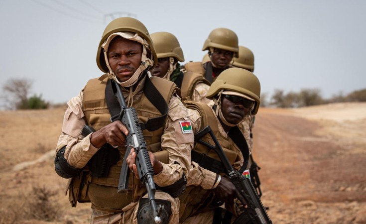 A soldier from Burkina Faso stands guard along the border with Mali and Niger during a military operation against terrorist suspects. © Michele Cattani
