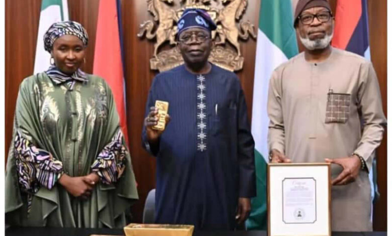 Nigerian Minister Presents Gold Bar to Tinubu, Says Transaction Will Boost Foreign Reserves