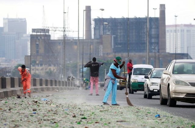 Workers began a clean up of the streets of Lagos on Saturday after the relaxation of a round-the-clock curfew after days of unrest sparked by the shooting of protesters demonstrating against police brutality in Nigeria.