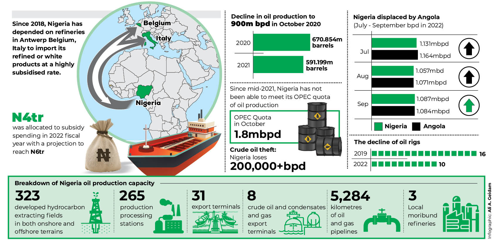 Since 2018 when the refineries shut down completely, Nigeria has depended on refineries in Antwerp Belgium, Italy to import its refined or white products, which are heavily subsidised at an initial N4trillion for the 2022 fiscal year, but has been projected to reach N6trn in subsidy cost.