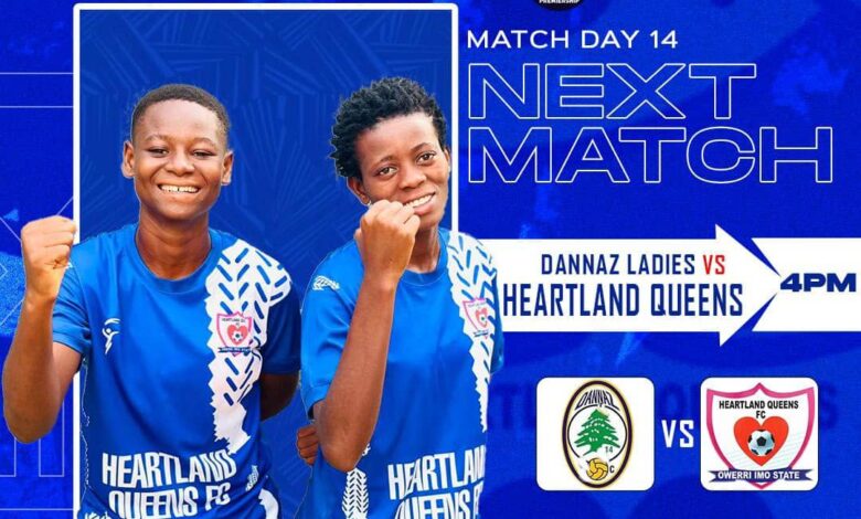 Heartland Queens will be the illustrious guests of topflight newcomers and hosts, Dannaz Ladies in Wednesday’s NWFL Premiership matchday 14 game at the 10000 seats iconic Mobolaji Johnson Arena in the heart of Lagos Island, Onikan, Lagos formerly Onikan Stadium.