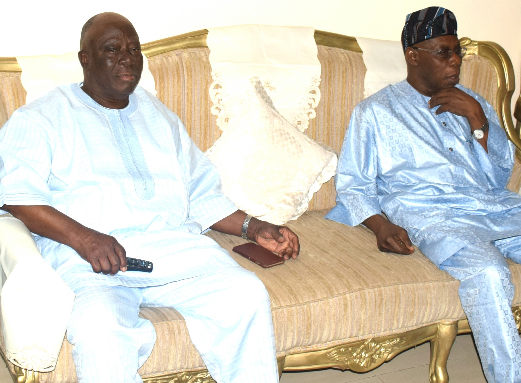 Former President Olusegun Obasanjo (left) during his visit to Chief Ayo Adebanjo, on Saturday, June 23, 2018