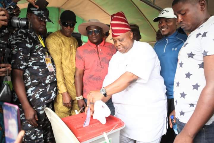 Candidate of the Peoples’ Democratic Party (PDP) in the ongoing governorship election in Osun State, Senator Ademola Adeleke, has won his polling unit.