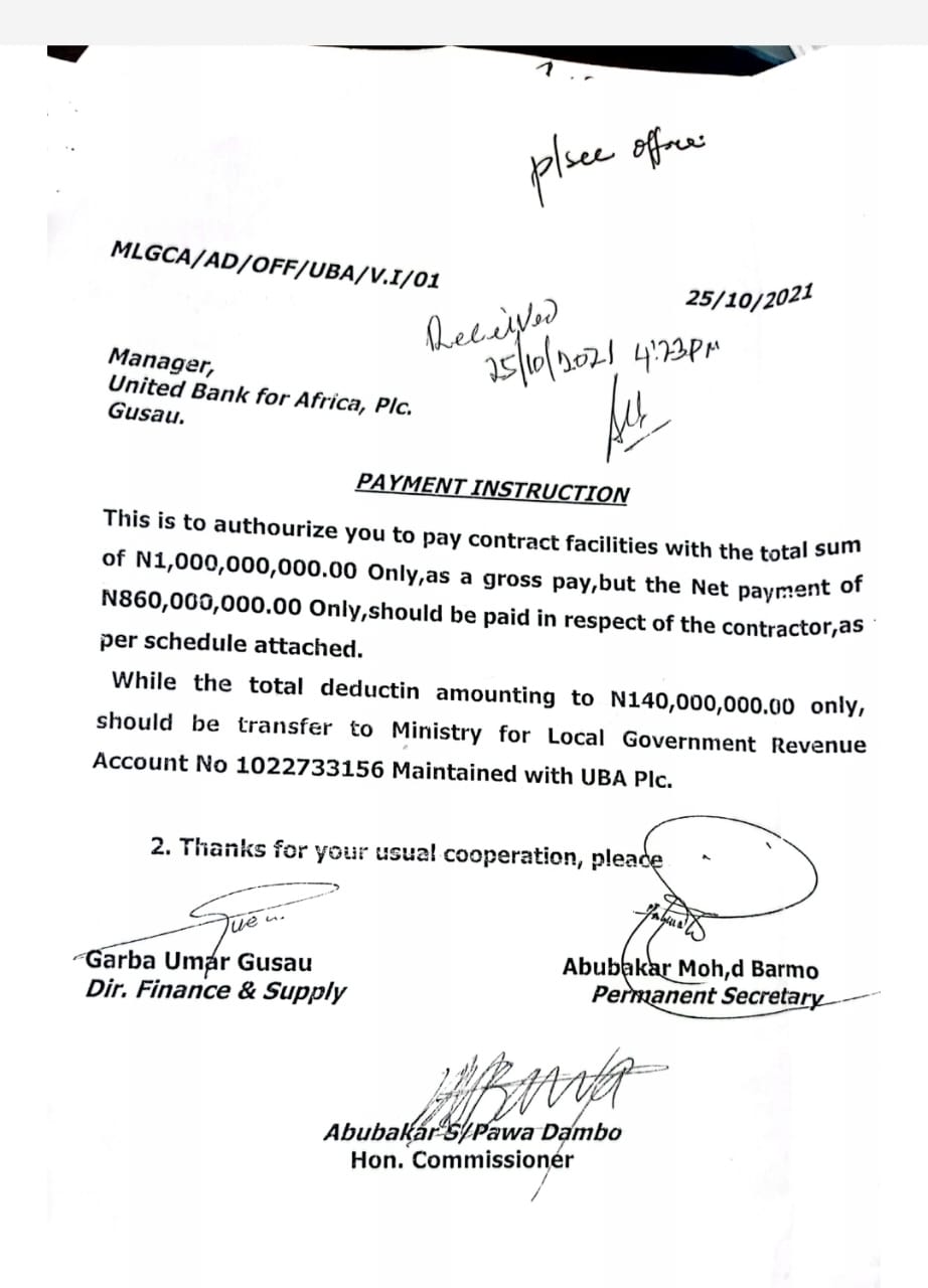 According to him, the tragic financial situation the current administration met in Zamfara State is manifestly a product of the past government of Bello Matawalle, who, through a mere telephone call, directed the Ministry of Local Government in complete disregard of any due process to remove 1,000,000,000 billion Naira from the Local Government Joint Account on October 25th, 2021, and paid 825,000,000 million Naira to the contractors without any valuation.