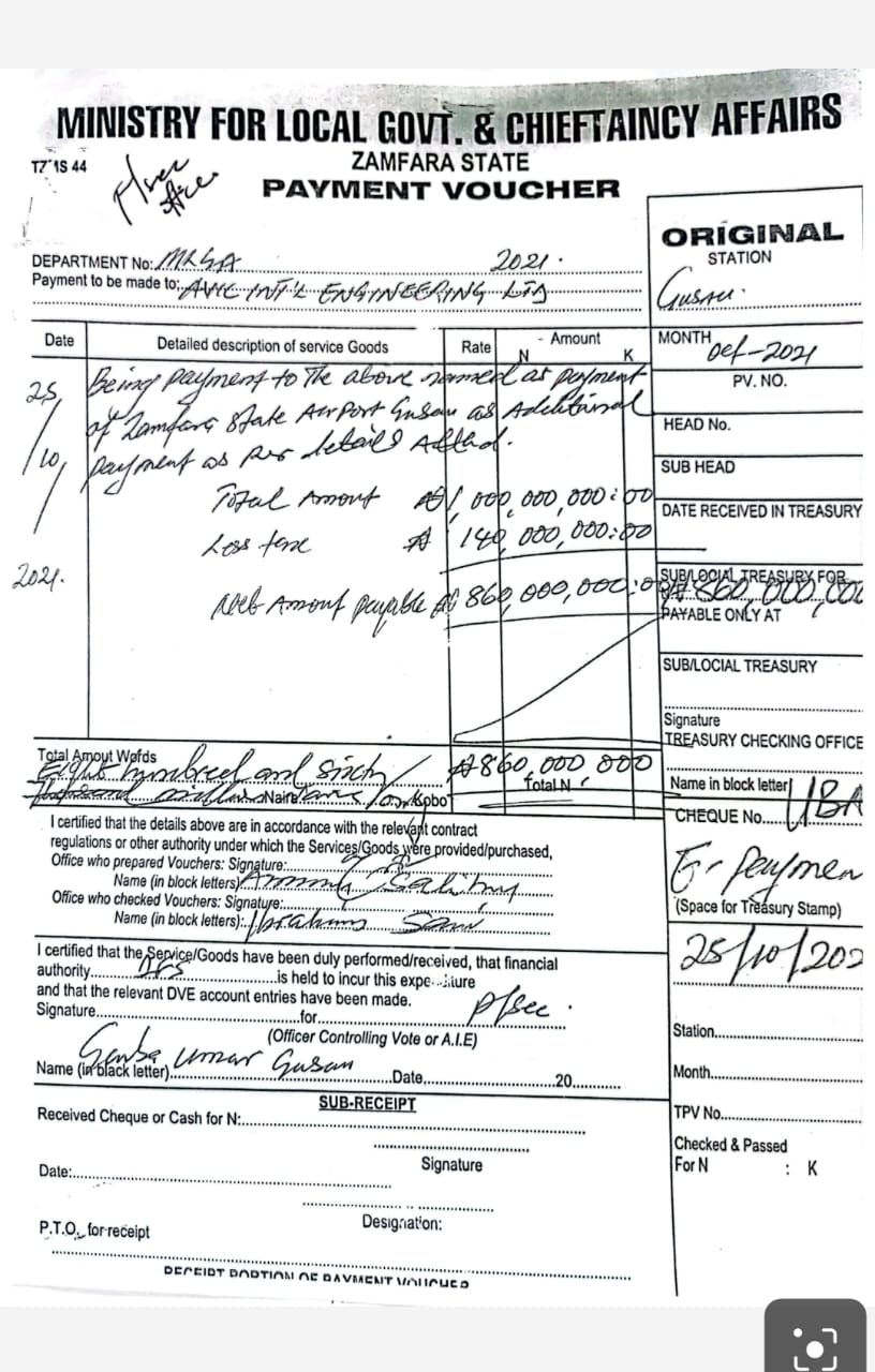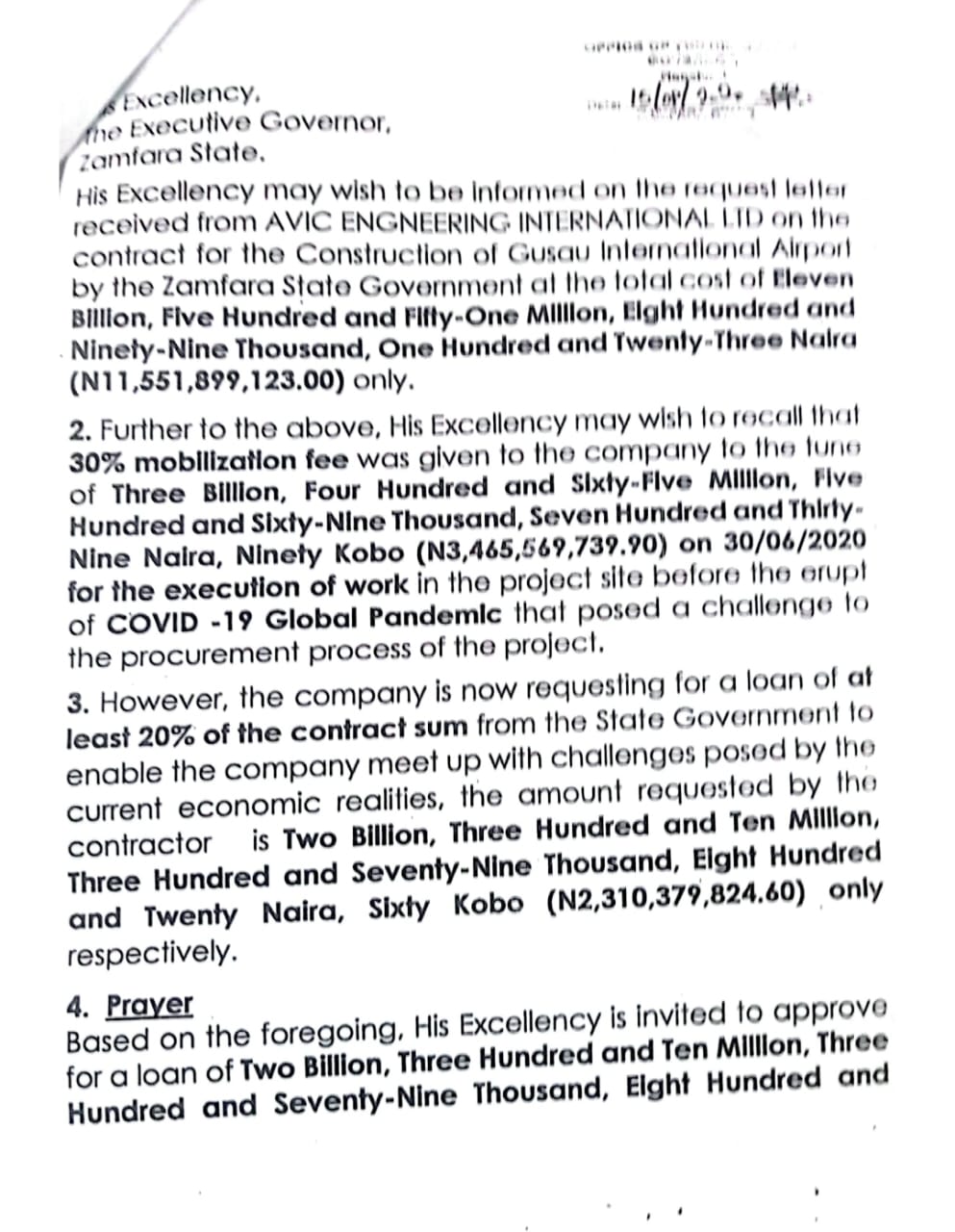 “Matawalle has claimed that the Airport Project was financed through what he called ‘contract financing’; the former Governor should have asked before embarrassing himself. It is known as the ‘Contract Financing Facility (CFF)’, which happens between the bank and the contractor. The government isn’t involved at all. All available documents indicate that the contractors were paid using funds from the state government and not through the Contract Financing Facility (CFF).