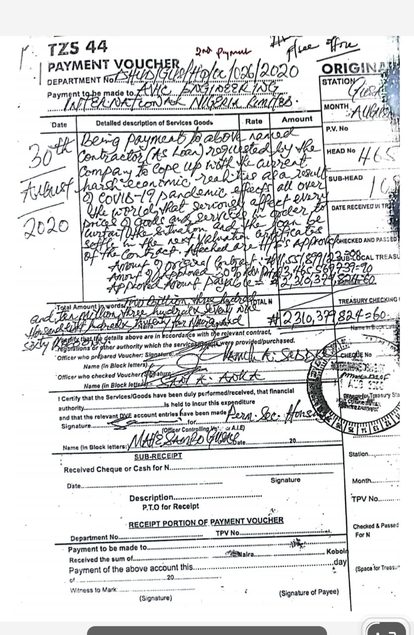 “Only a few days after the initial payment, the government came up with new terminology in contract ‘corruption management’ and approved what it called ‘loan’ to the contractors in the sum of N2,310,379,824.60. This payment was referred to as a loan to the contractors when very little work had been done on-site. The relevant government institutions did not certify the payment, weren’t correctly vouched and were therefore irregular in the government’s finance management.